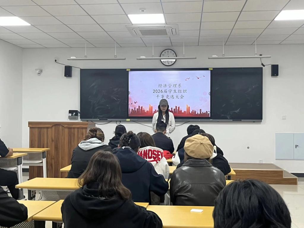为吸纳新生力量,壮大学生组织队伍,同时为2025级新生提供锻炼能力、融入集体的实践平台,10月13日至14日,经济管理系在日新楼B301和B304教室组织开展了2026届学生组织干事竞选大会。我系团总支负责人王昕钰、各位专职辅导员及2025届主要学生干部共同参与了此次竞选面试工作。