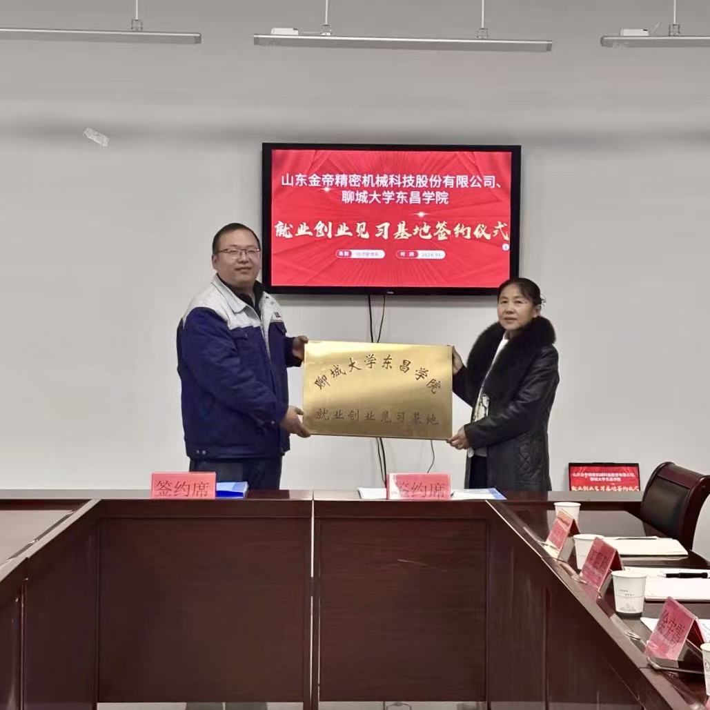 为深化产教融合,拓宽学生实习与就业渠道,1月9日,经济管理系与山东金帝精密机械科技股份有限公司举行就业创业见习基地签约暨授牌仪式。公司经理王庆坤,我系党总支书记徐宏霞、团总支负责人王昕钰、专职辅导员张万硕、秦庆帅及学生代表共同出席。